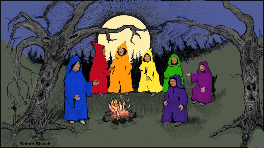 Then the Sister of the Violet Ray stepped forward to greet Princess. “Come with me, dear one. Let us walk together down the sacred path.” Guided by lunar light, they found their way, taking a turn to the right and a twist to the left. They entered a grove of grandmother trees, the godparents of the forest. Gentle rays of moonlight caressed the countenance of the Violet Sister. Her clairvoyant eyes focused on Princess. “You may call me Onawa. I am the elder of this clan; we are the seven sisters of the rays of rainbow light. I sent for you to meet me here.”